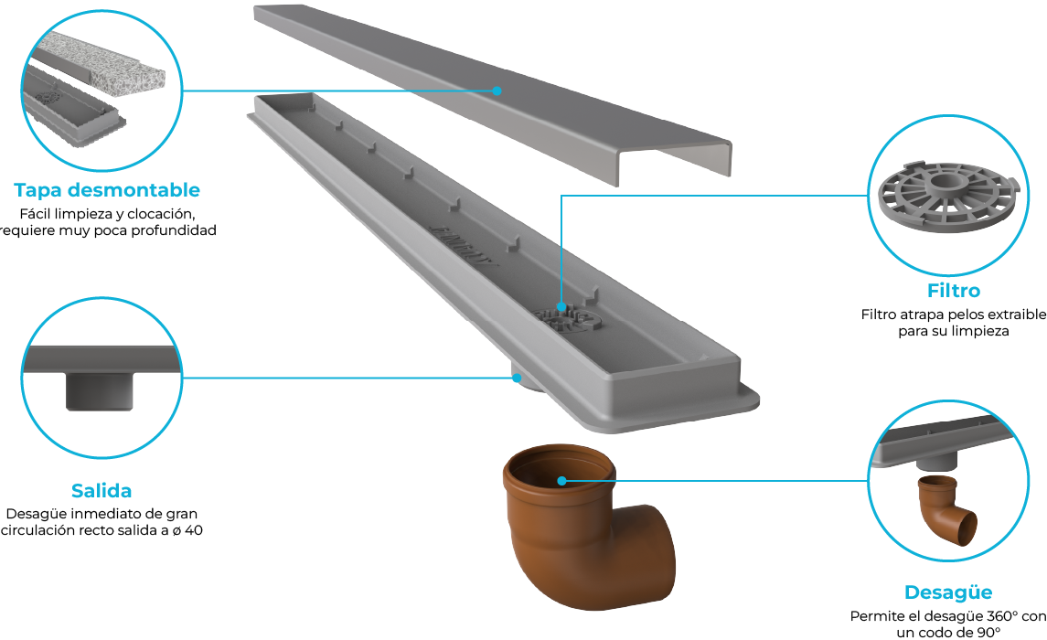 Desague pluvial apto para baños, balcones, lavaderos y más